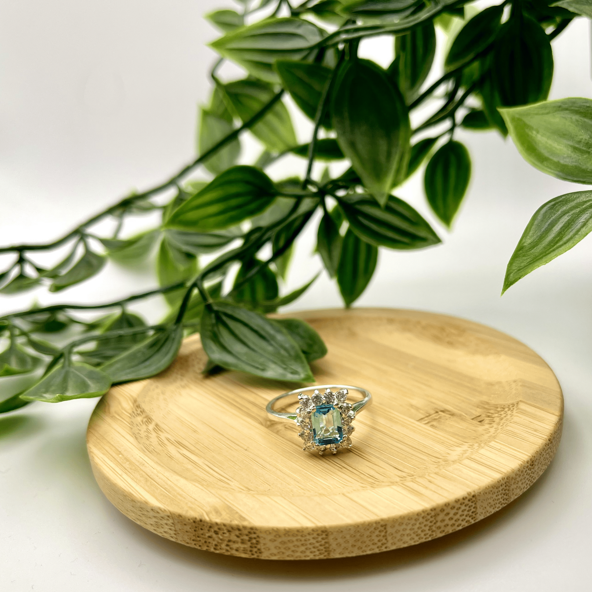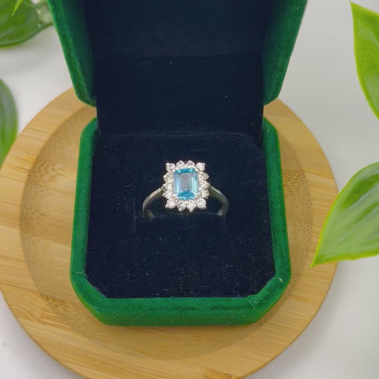 Ladies’ Sterling Silver Ring – Rectangular Topaz with White Stone Halo (Size 7 ¾)