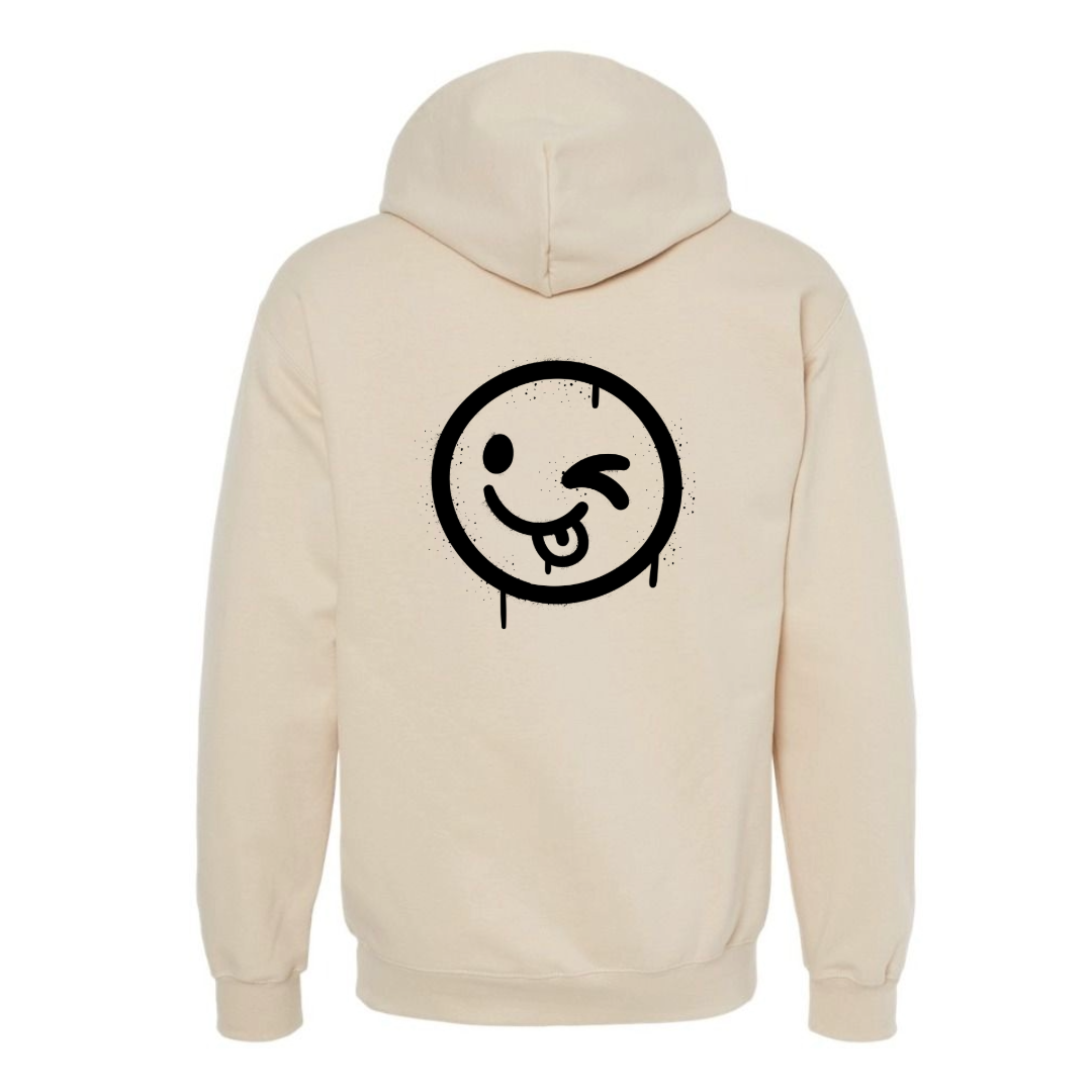 Men's Silly Winking Smiley Oversized Hoodie - Black