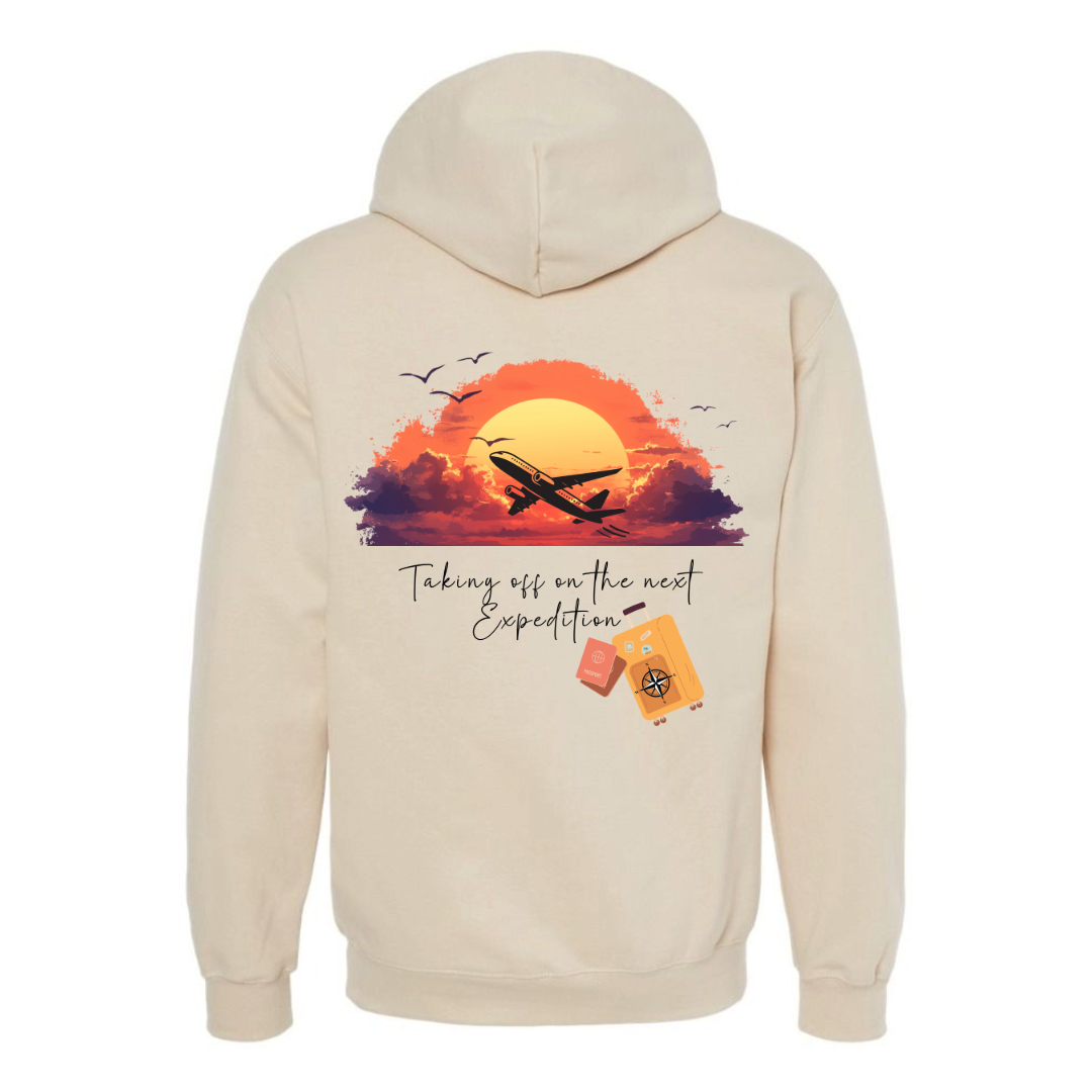 Taking Off on the Next Expedition Hoodie – Double-Sided Travel Sweatshirt – Unisex Midweight Adventure Pullover